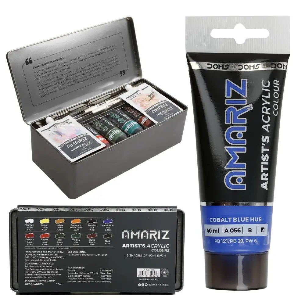 Amariz Artist Acrylic Colours Set – 12 Shades (40ml Each) with Accessories