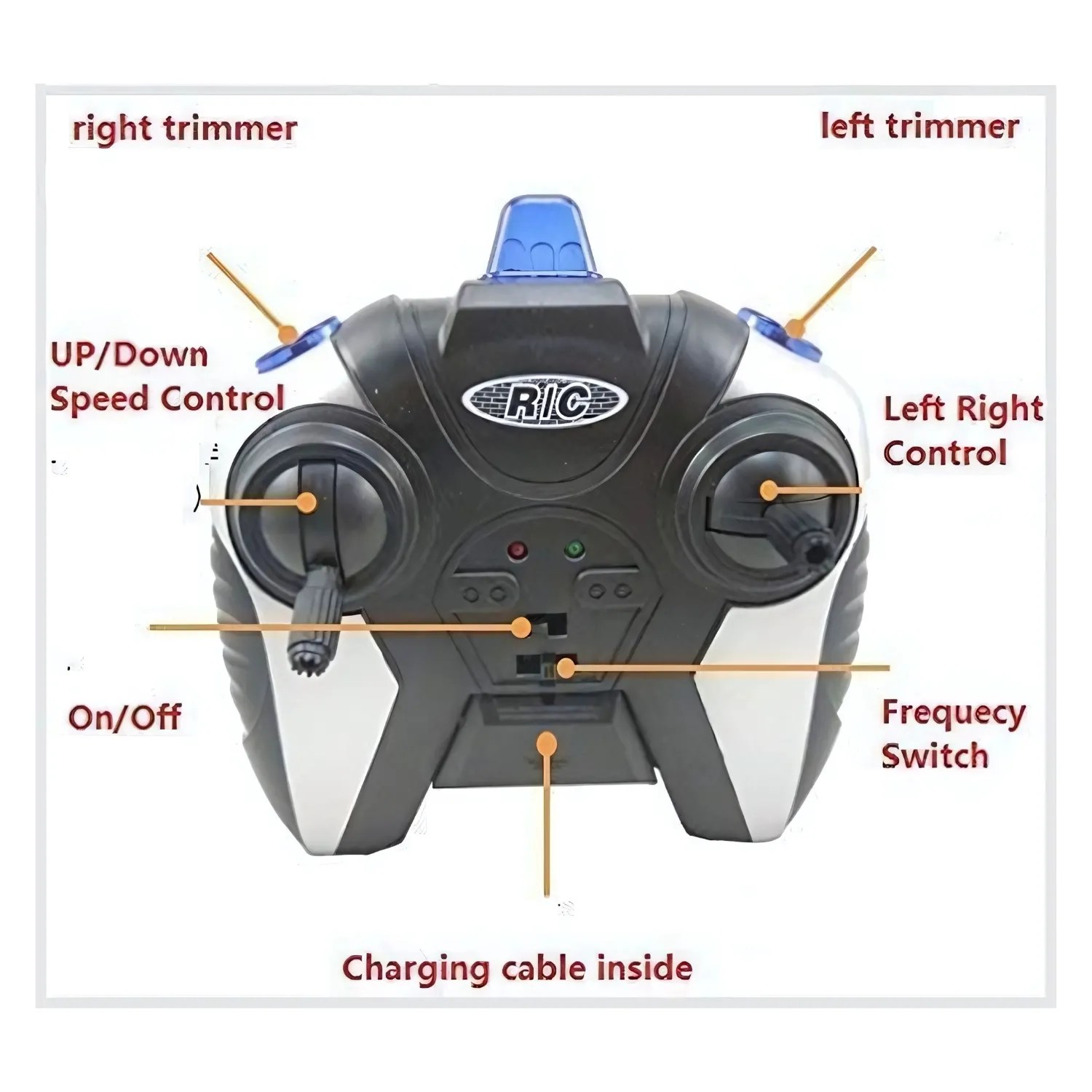 The HX 708 rechargeable remote control helicopter delivers a smooth and stable flight experience, perfect for beginners and kids. It charges directly through the remote, which requires 5×AA batteries (not included). Featuring dual joysticks for speed and direction, right and left trimmers for balance, and a frequency switch for multiplayer fun, it ensures precise and enjoyable control. The lightweight yet durable build makes it ideal for indoor flying. Available in assorted colors, the color will be provided as per stock availability at the time of order.